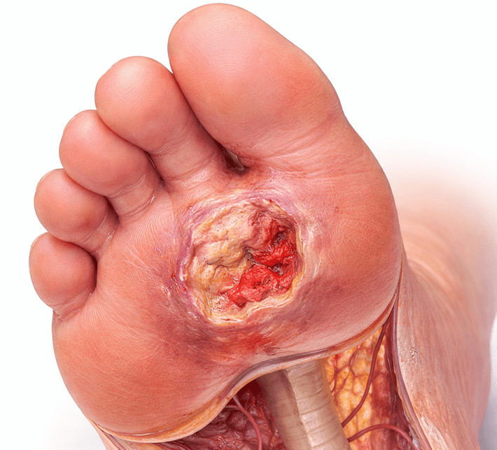 Advanced diabetic foot treatment preventing infection, ulcers, and limb complications.