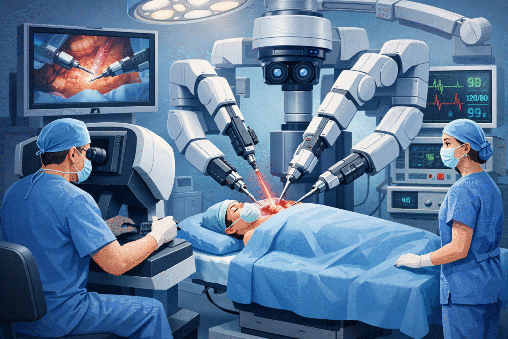 Advanced robotic surgery provides precise, minimally invasive treatment with enhanced visualization, reduced complications, faster recovery, and improved patient outcomes.